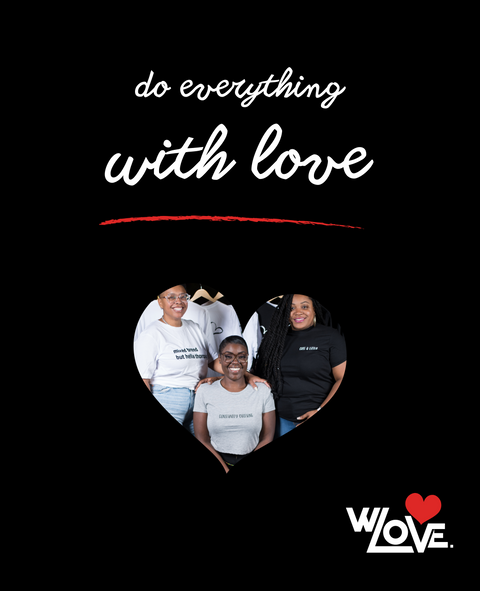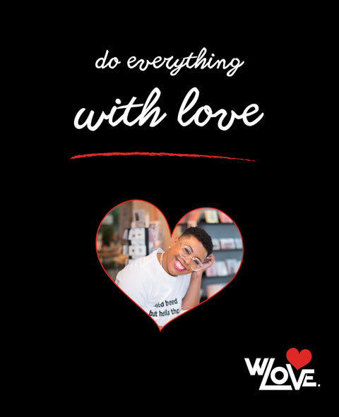 A brand that encourages you to do everything with love, everything. Meditate. Eat. Give. Cuss. Bathe. It's our hope that you use love always when using our products.